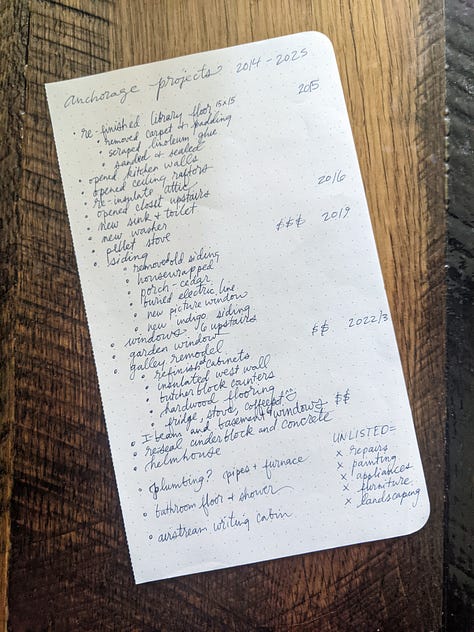 I grow impatient every now and then for completion. There are a host of possibilities outdoors. I could be converting an airstream into a writing cabin already. I tell myself that right now we’re concentrating on the last large piece of restoration for longterm livability in an old farmhouse. The boiler is shot, the plumbing is a maze of decrepitude, and the tub is permanently stained. I know we could limp along as-is without complaint. We’ve made do for a decade scrubbing rust-orange porcelain. But it feels like future residents and guests might appreciate some upgrades. Not too many, of course.